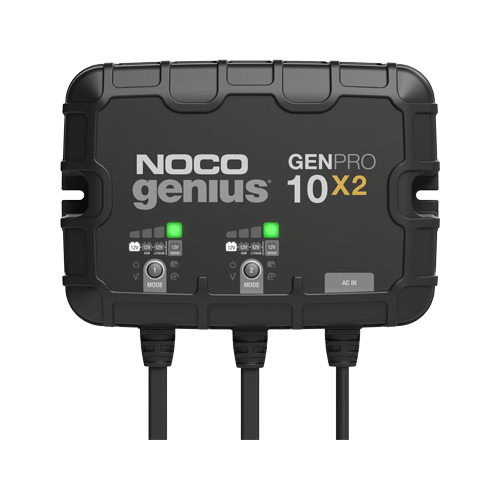 Meet the all-new GENPRO10X2. Similar to our GEN2, only better. It’s 19% smaller and delivers 33% more power. It’s one of the best performing onboard marine battery chargers we have ever made. A two-bank onboard battery charger rated at 20-amps (10-amps per bank) for 12-volt batteries, including marine, boat, starter, and deep-cycle batteries. Independently charge and control each battery bank with selectable charging modes – including 12V, 12V AGM, 12V Lithium, and 12V Repair Mode – for all types of lead-acid and lithium-ion batteries.